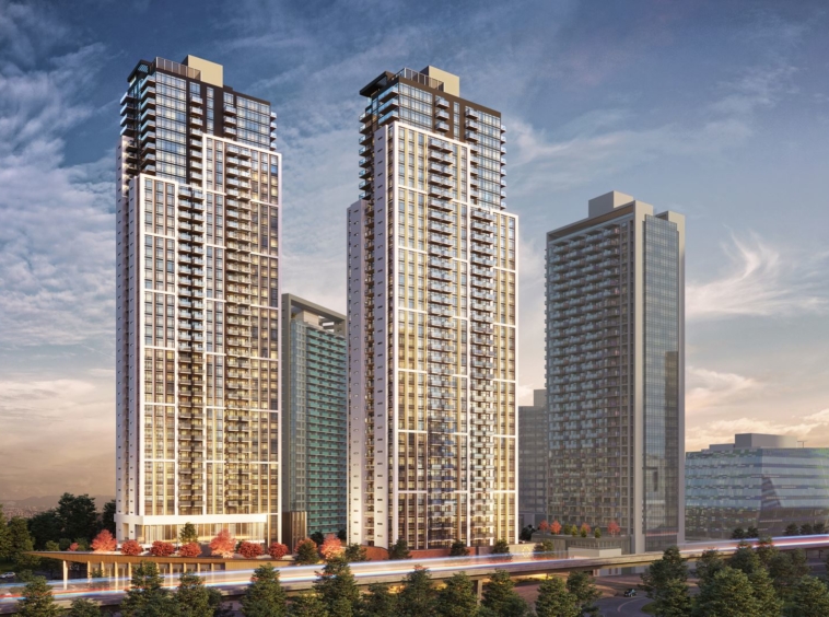 The community includes a LEECP Gold office building on site, 42,000 square feet of extensive residents-only amenities, and 125,000 square feet of retail space with a pedestrian-friendly urban plaza offering groceries, coffee, eateries and more, just an elevator ride away